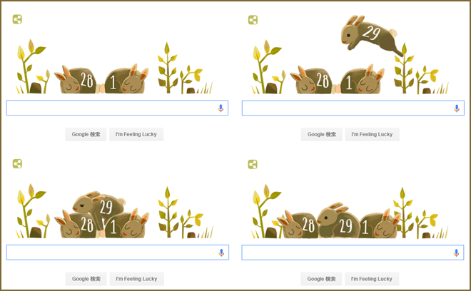 今日、Googleロゴが閏年バージョンに変わっていましたね。