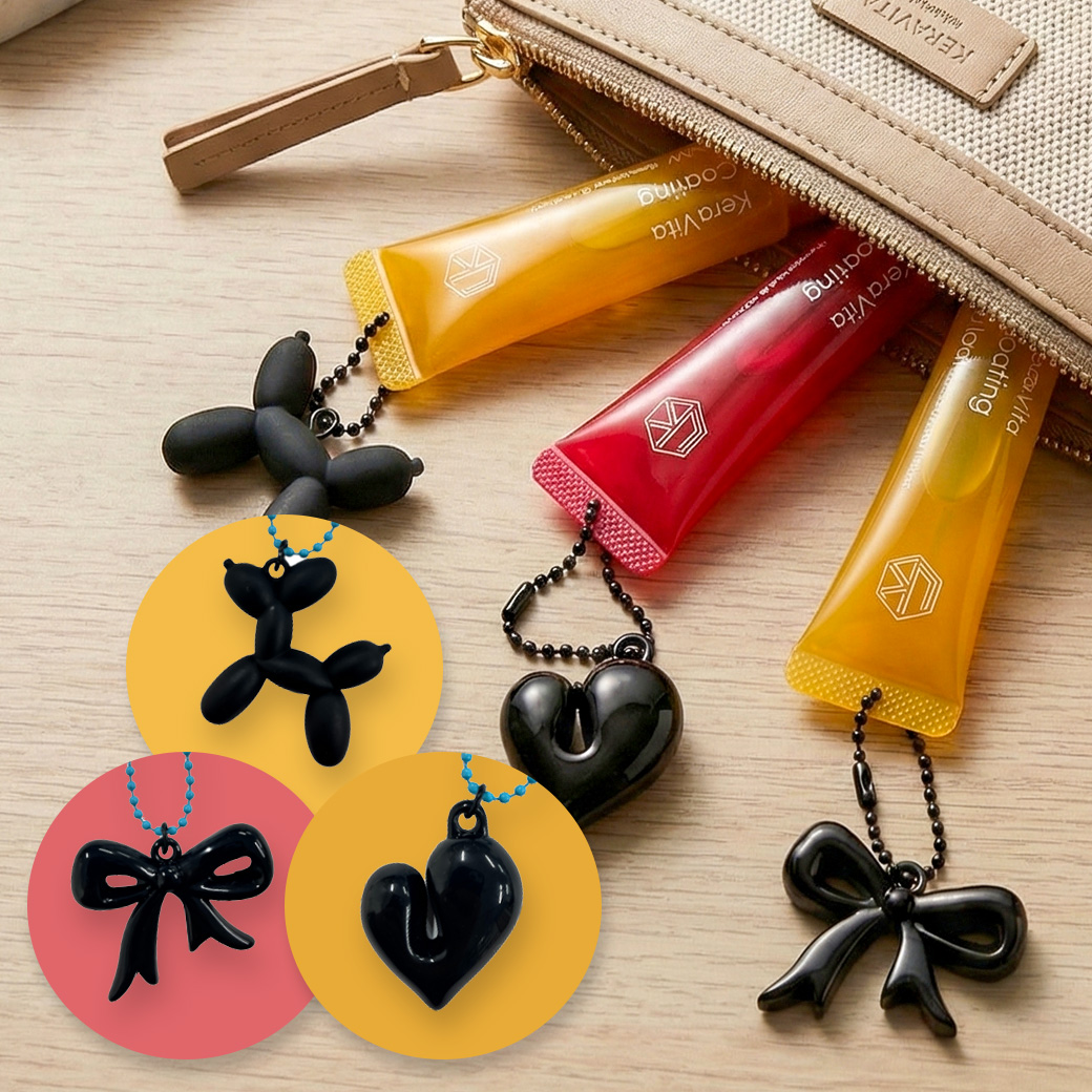 ケラビタコーティングに特製チャームをプラスして、ポーチやバッグに付ければ、毎日がちょっとハッピーに♪