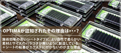 このシリーズが多くのサロン様に認知され、ご使用頂くことになった理由は、おそらく元々施術効率の良いシートタイプのエクステの問題点となっていたシート部分の「ベタつき」がほぼ完全に解消されたことにあると思います。又、商品のカール、太さ、長さの「バラつき」を可能な限り最小限に抑えていることもその理由のひとつだと思います。これも施術効率を上げるための重要な部分なので、今まで以上の施術時間の短縮が可能になるはずです。もうひとつ、別ラインのシルクタッチシリーズにも言えることですが、エクステ自体の柔らかさも補足しておきます。